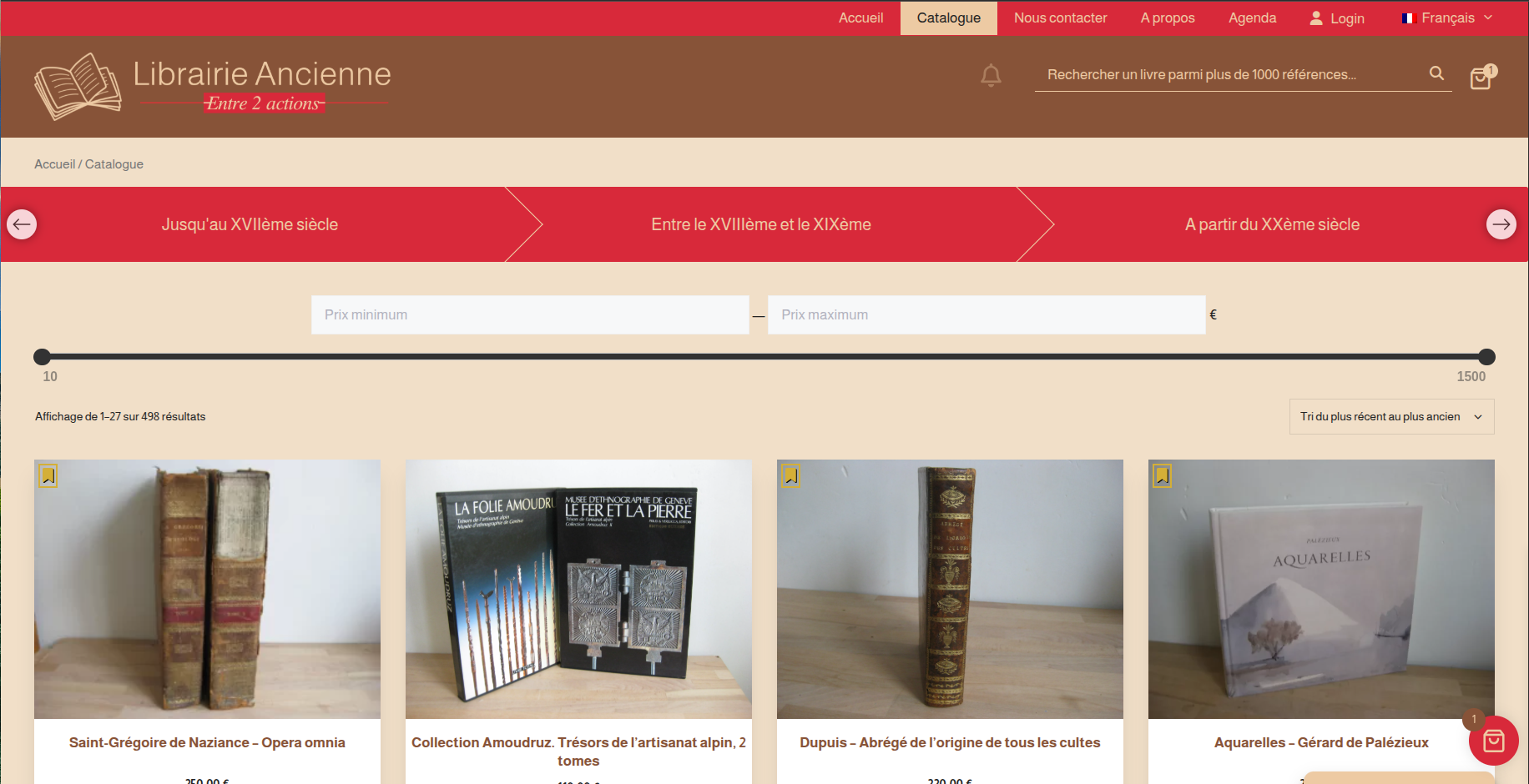 Le catalogue digital de la librairie ancienne Entre 2 actions